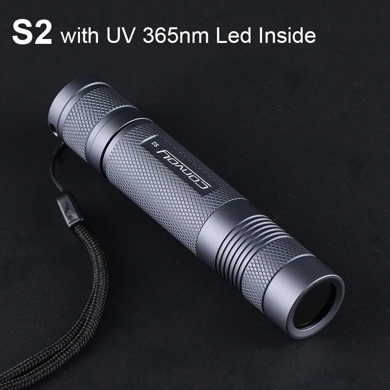 Фонарик Convoy S2 УФ 18650 нм для повседневного использования, серый УФ светодиодный фонарь, ультрафиолетовая лампа,