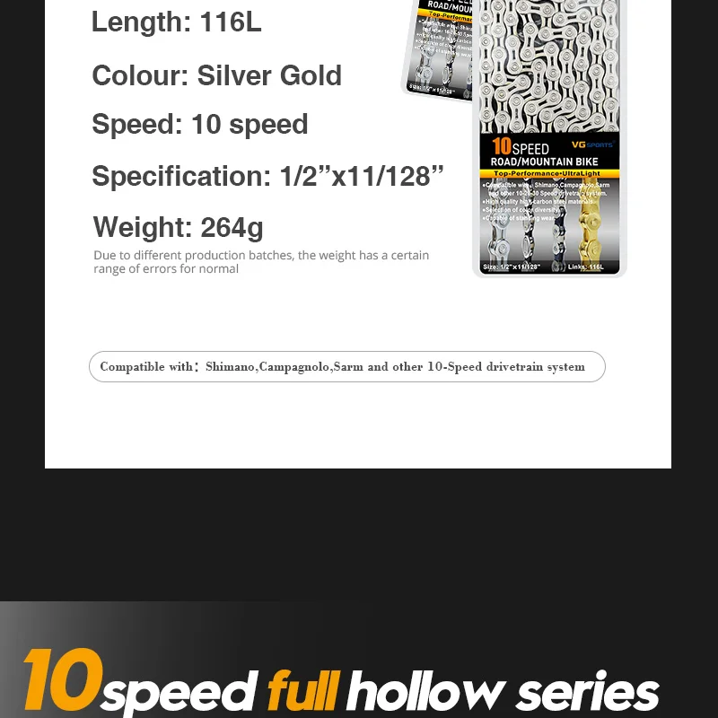 Сверхлегкие велосипедные цепи VG Sports, 116 звеньев, 8, 9, 10, 11 s,