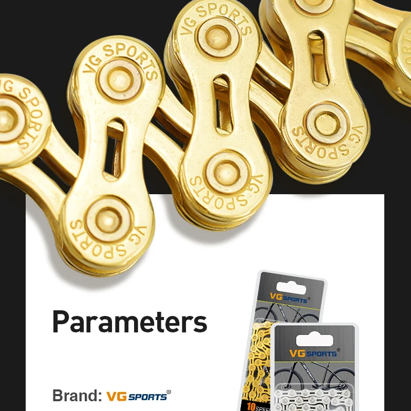 VG Sports 9 цепь для скоростного велосипеда половинаполый 116L титановые золотые и серебряные цвета с цепями MissingLink для горных и дорожных велосипедов