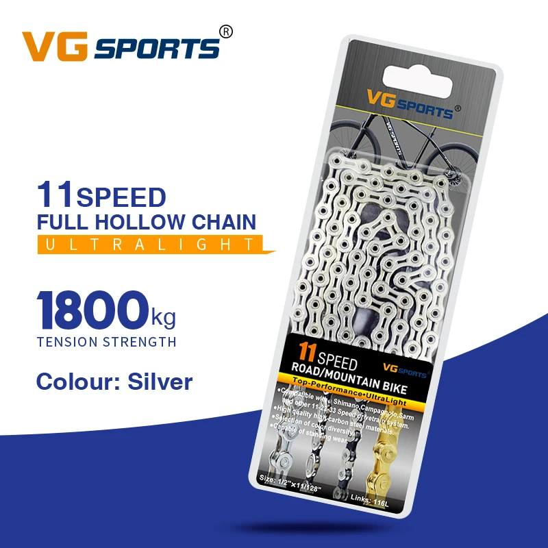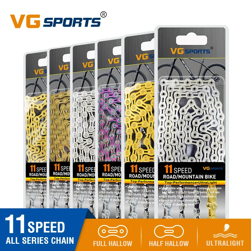 VG Спортивная велосипедная цепь, 11 скоростная велосипедная цепь, половинчатаяполная полая 116L титановаяРадужнаяЗолотистаяСеребристая MTB горная дорожная велосипедная цепь
