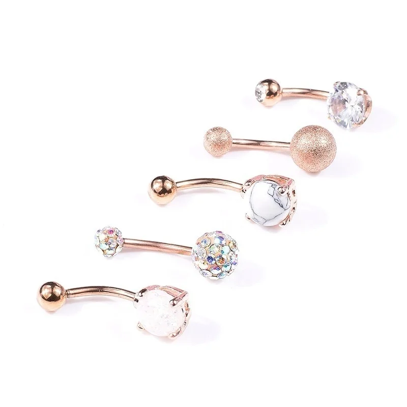 Женское кольцо в виде пупка, розовое золото, стразы, пирсинг пупка, ювелирные изделия из медицинской стали