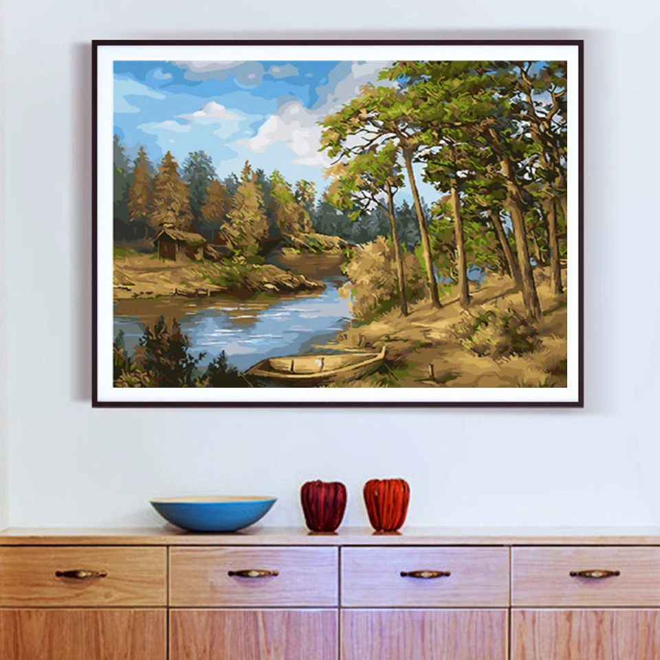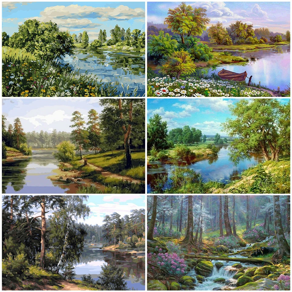 Картина маслом по номерам AZQSD, натуральный пейзаж, сделай сам, ручная роспись, Подарочные Картины по номерам, лес, украшение для гостиной и дома