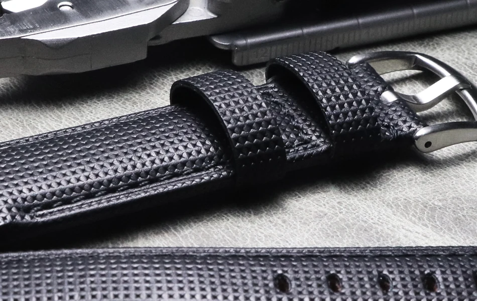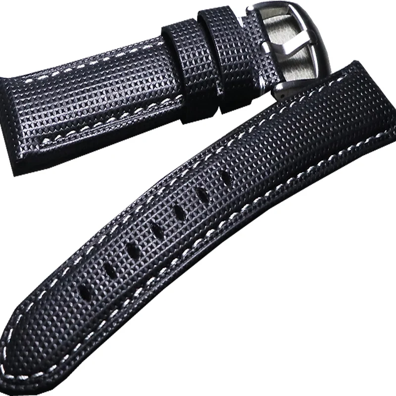Модные черные ремешки для часов 20, 21, 22, 24, 26 мм, мужские аксессуары для часов, кожаный ремешок для часов, толстый браслет для часов, брендовый ремешок для часов