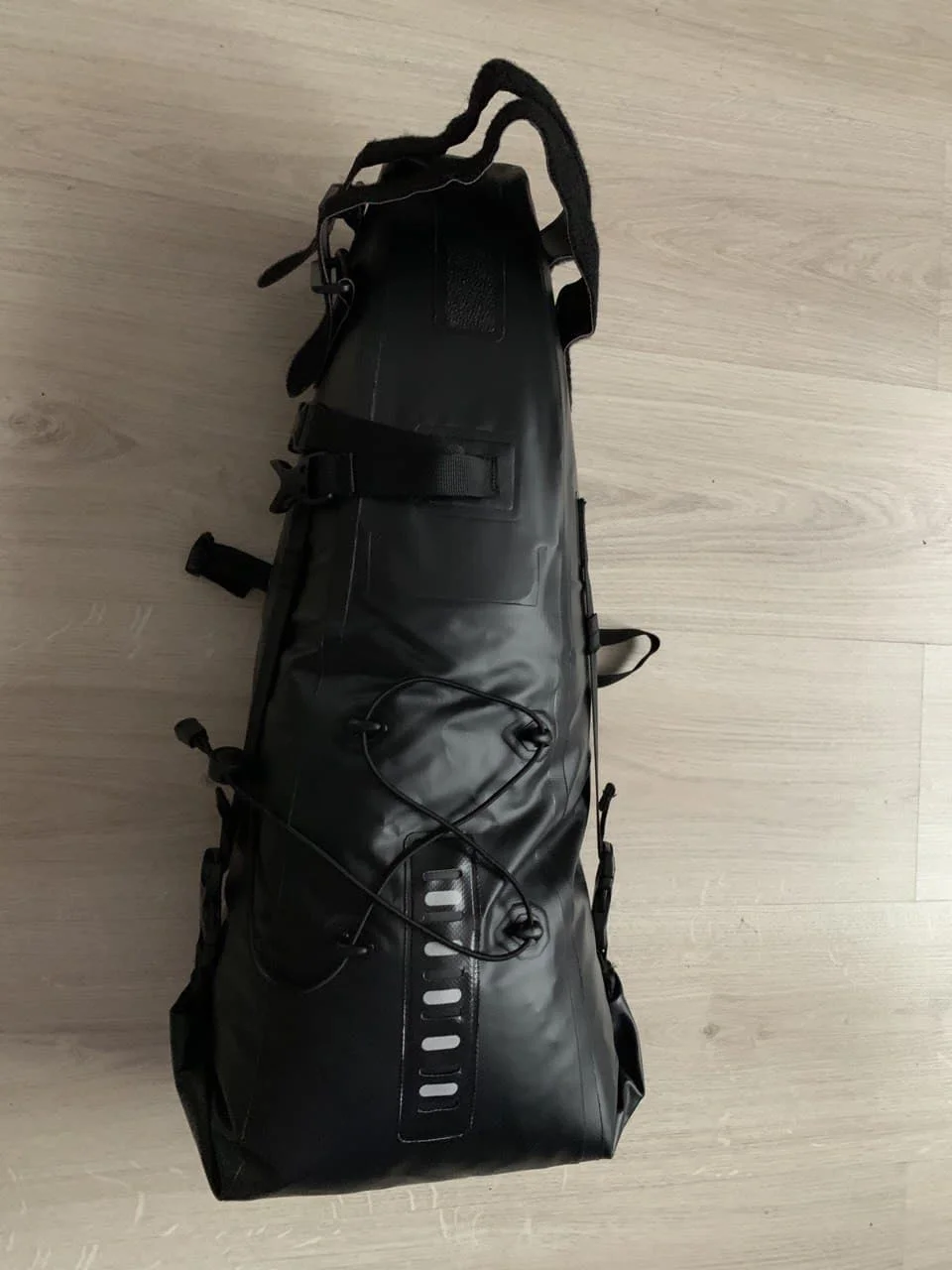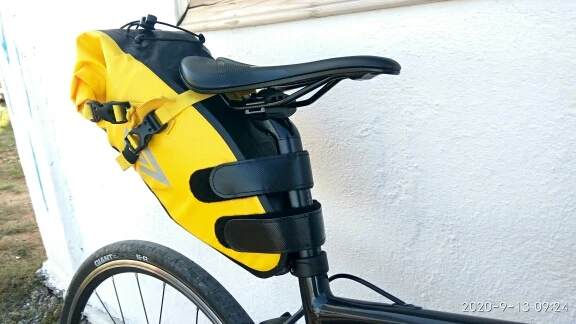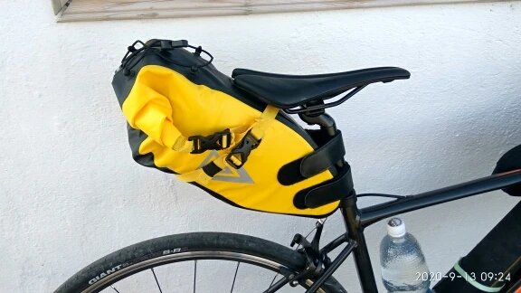 отличная сумка! Проехал с ней бреветы на 200 и 600 км и она показала себя превосходно! Я хорошо утрамбовывал вещи в нее и сильно утягивал. В итоге сумка не качается вообще, стоит колом как влитая по каким бы я ухабам не ехал. А внешнему виду все завидуют - жёлтые бока, яркие, сочные - прекрасное сочетание с чёрным цветом. Минус вижу только один - отсутствие клапана для стравливания воздуха. Без клапана на много сложнее утянуть сумку. Так же я понял, что удобнее всего брать такую сумку, где мешок вещевой вставляется в корзину (но это уже не относится к этой сумке). Совет сомневающимся в выборе объема: берите на 13 литров. Я тоже сомневался, думал будет сильно большая, но поверьте - разница в +10 см к длине сильно не увеличивает сумку, качаться она вряд ли будет, зато бывают такие случаи, когда не хватает буквально пары сантиметров, что бы засунуть все вещи и нормально утянуть сумку.