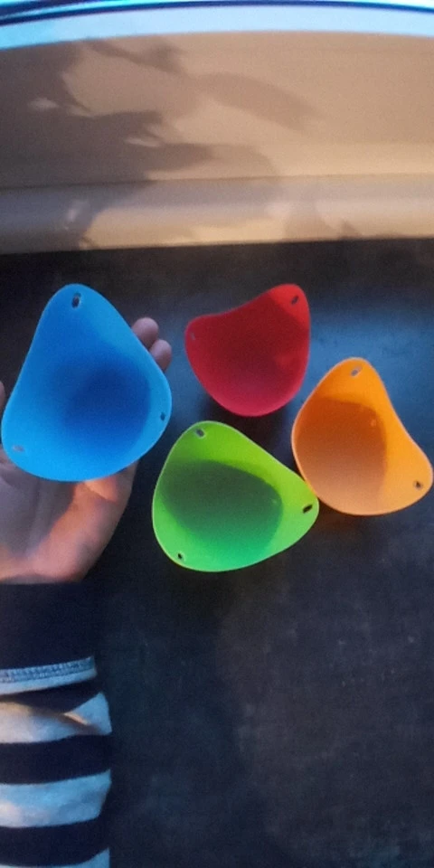 Я разочарован... На силиконовых формочках был плохой запах даже после мытья, и я испытал их, чтобы сделать яйца-пашот водой, но форма настолько мягкая, что вода попадет внутрь и смешивается с яйцом. Кроме того, яйцо застревает в форму, и его очень трудно мыть. Я не доволен и не рекомендую.