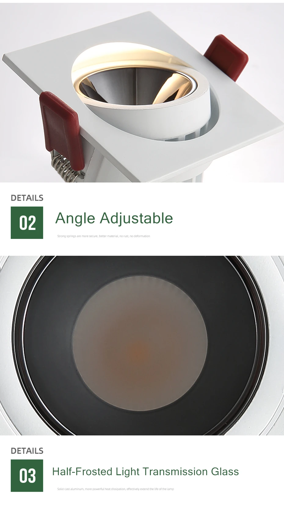 Новинка 2020, антибликовый светодиодный утопленный Точечный светильник DBF с регулируемой яркостью, 7 Вт, 12 Вт, потолочный Точечный светильник, AC 110 В220 В, квадратный Точечный светильник с регулируемым углом s