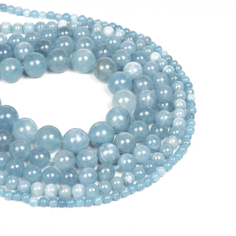 Бусины из натурального камня, аквамарин, халцедон, круглые свободные бусины для рукоделия ювелирные изделия, изготовление браслетов, аксессуары для рукоделия 4-12 мм