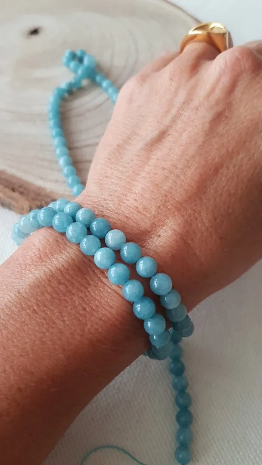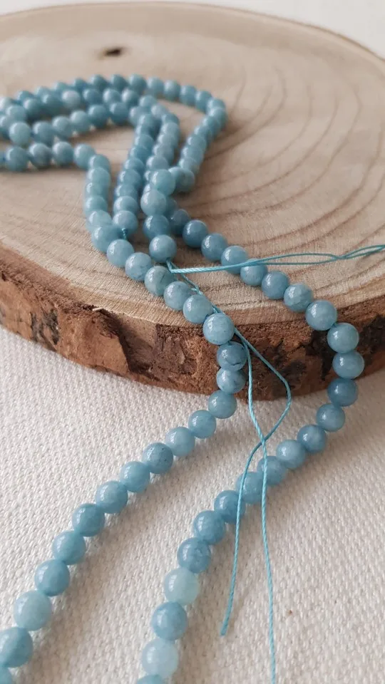 Бусины маленькие, ровные, цвет красивый. На нитке камни разных оттенков от бледных до насыщенных - очень красиво. Тактильно они холодные, о происхождении судить не берусь. Заказала вторую нить, понравились очень.