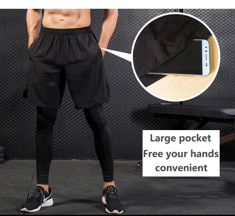 2-в-1 Для Мужчин Спортивные Компрессионные Леггинсы Похожие продукты Штаны Фитнес Спортивная одежда для бега впитывает пот и Штаны с карманами, беговые штаны, леггинсы