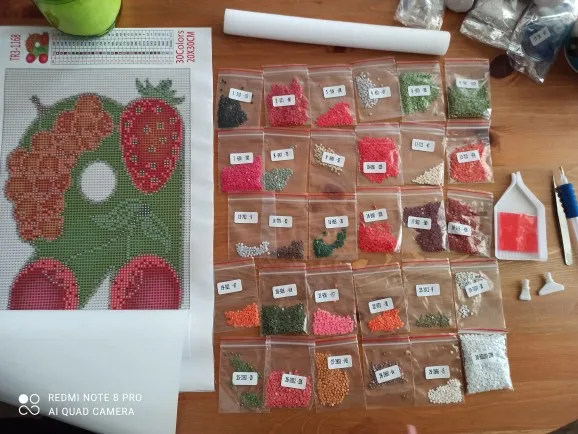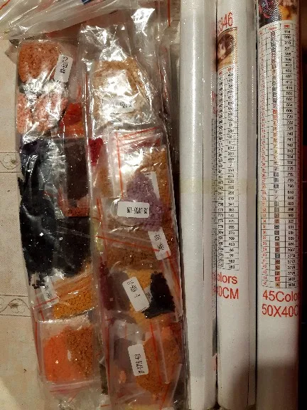 Картина по фотографии выполнена быстро, упакована хорошо, пришла без замятия и заломов. Правда, очень долгая доставка, но так работает наша почта. Стразы упакованы в полиэтиленовые пакетики с номерами. Большое количество страз - в большие пакетики, маленькое количество - в маленькие. У других продавцов стразы упакованы в большое количество маленьких целлофановых пакетиков. Тот, кто много картин собирает, меня поймёт. Спасибо продавцу.