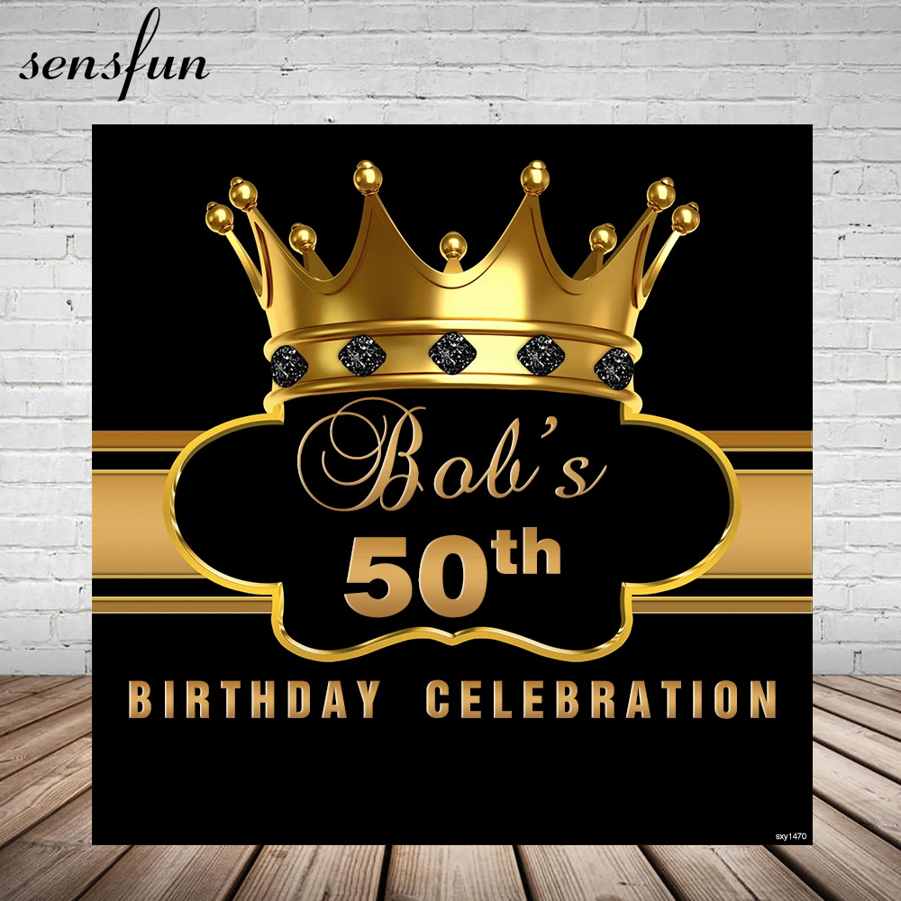 Sensfun черная Золотая Корона С Днем 50th на день рождения вечерние фоны для фотостудии для мужчин и женщин, взрослых фотографии фоны на заказ