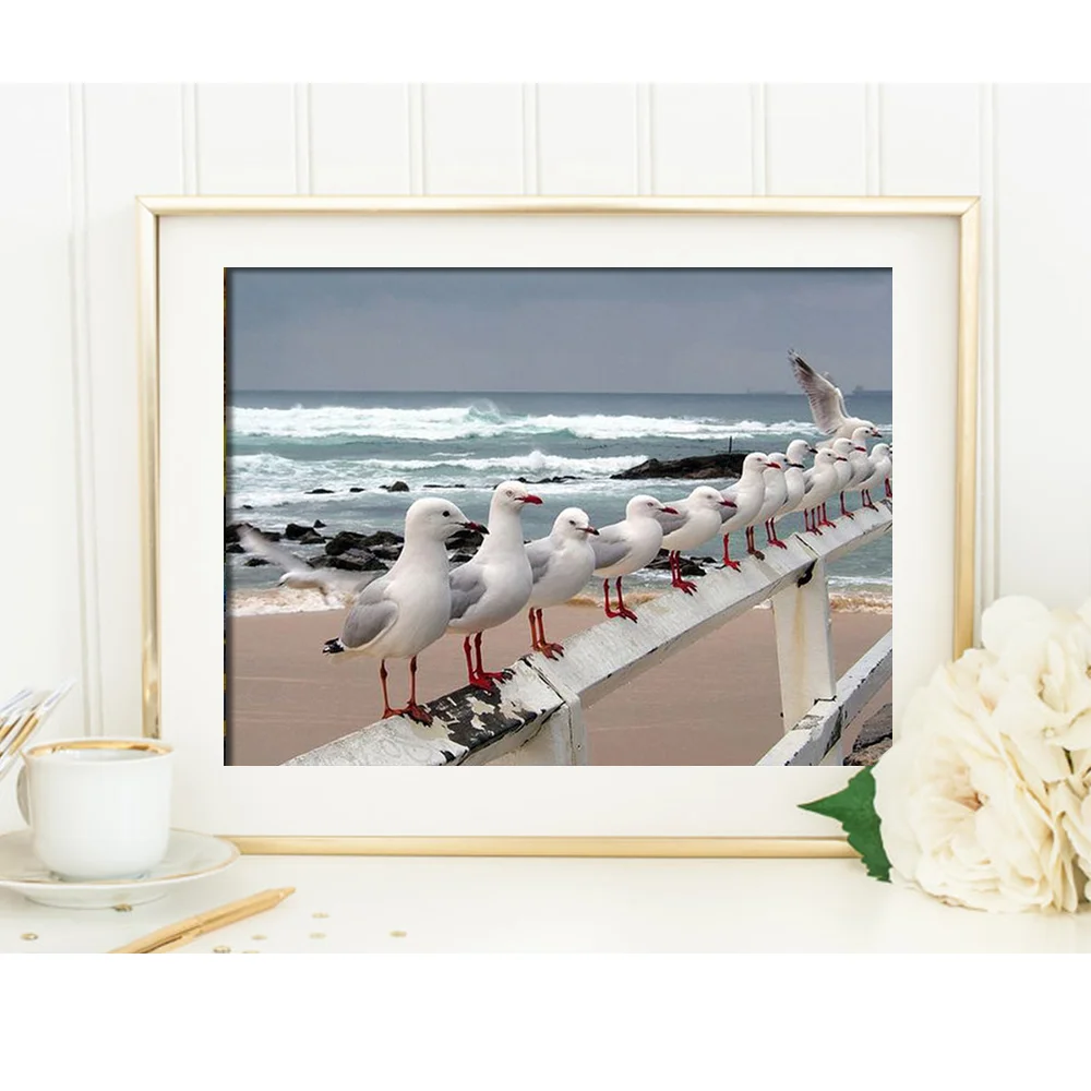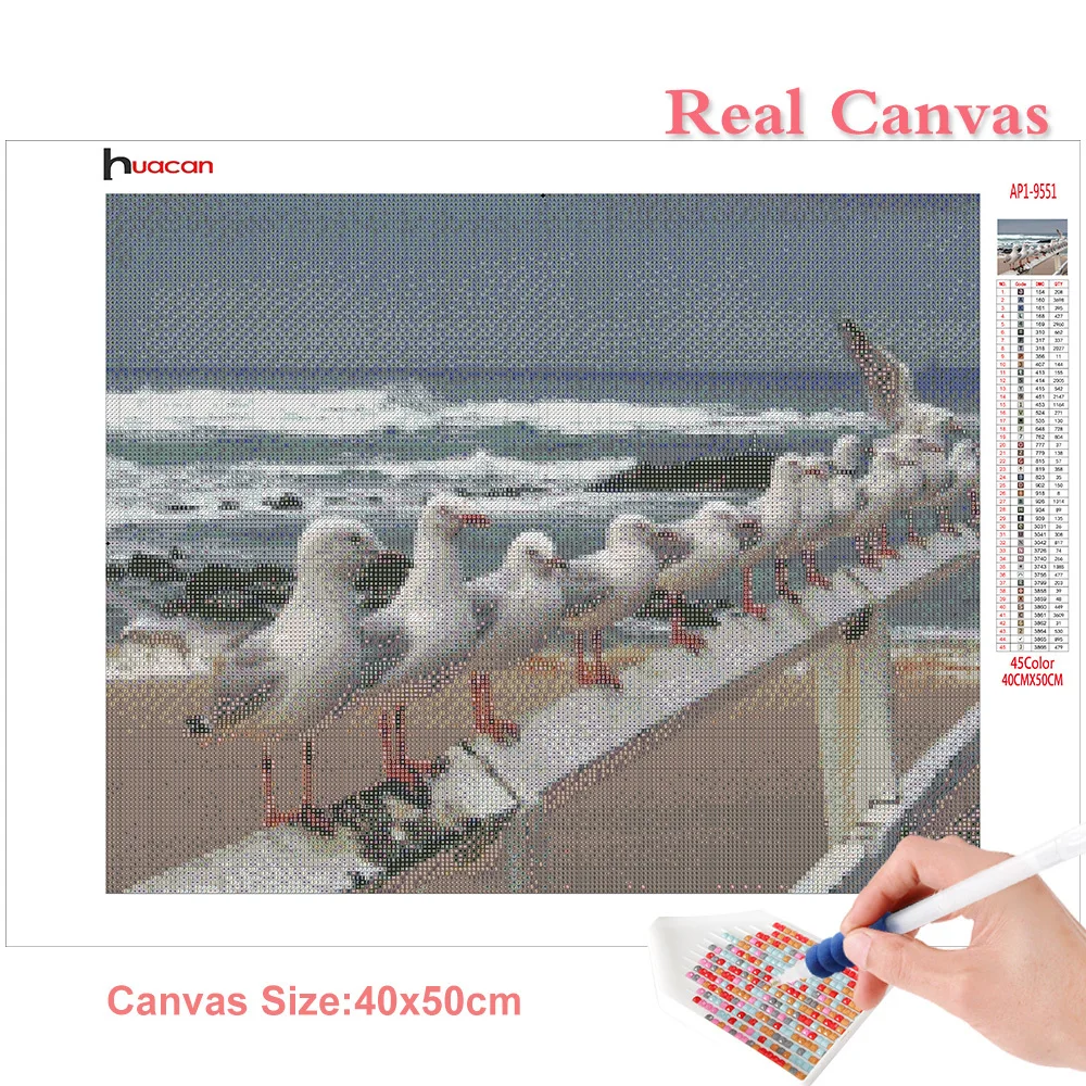 Huacan алмазная вышивка иконы птица мозаика картины из страз полная выкладка море природа декоративные наклейки на стену