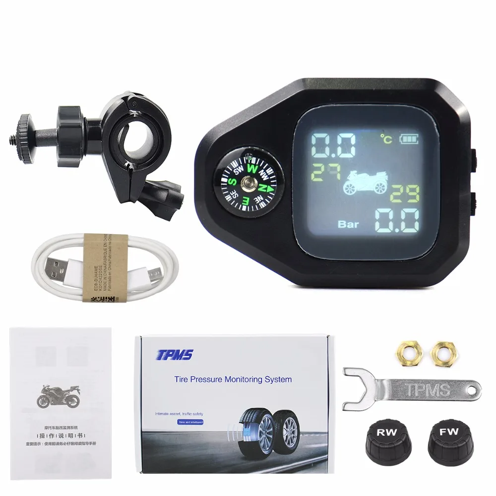 Многие аварии на мотоцикле вызваны плоской шиной на дороге. Как владелец мотоцикла, безопасность вождения является первым. Для уменьшения таких аварий необходима установка системы контроля давления в шинах (TPMS). С помощью системы TPMS мы можем поддерживать работу шин в пределах указанного диапазона давления и температуры в любое время, чтобы уменьшить повреждение шины для безопасного вождения.Основные характеристики:-Мощные TPMS:TPMS может контролировать давление в шинах/состояние температуры в режиме реального времени, который будет передавать голосовую сигнализацию в реальном времени и предупреждающий индикатор светильник, чтобы напомнить водителю о безопасности вождения.-Широкая совместимость:Эта система широко совместима с мотоциклами с 2 шинами. Вам не придется беспокоиться о проблеме совместимости.-Источник питания:Поддерживает usb-зарядку, что означает, что вы можете использовать usb-кабель (не входит в комплект) для зарядки, пока он находится в низкой мощности, довольно удобно.-2 внешних датчика:2 внешних датчика класса водонепроницаемости IP67 подходят для использования в дождливые дни. Кроме того, они обладают высокой чувствительностью и хорошей точностью для измерения давления и температуры.Характеристики: