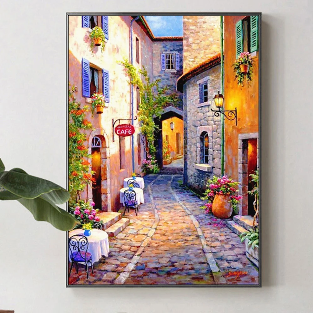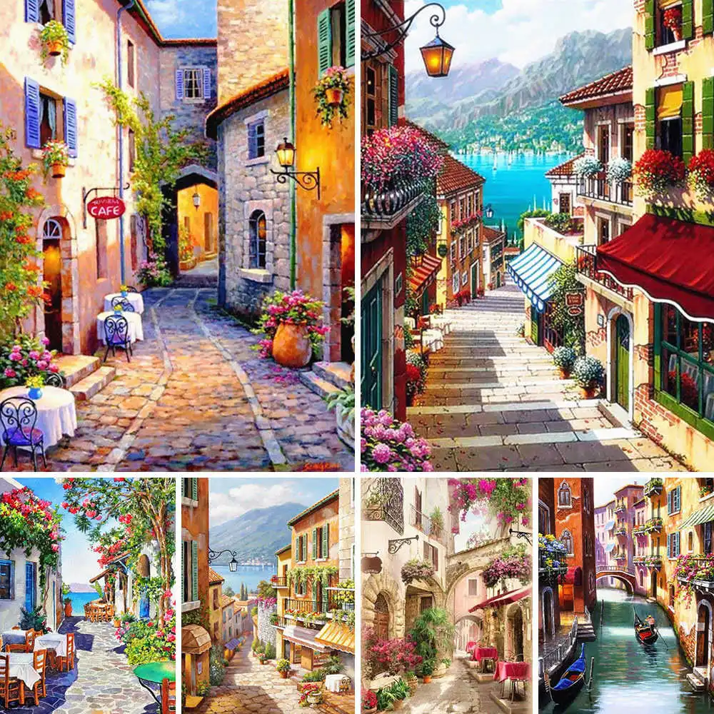 2020 Алмазная картина MEIAN Street 5D сделай сам, полностью круглая Алмазная вышивка, мозаика, ландшафт, украшения для дома