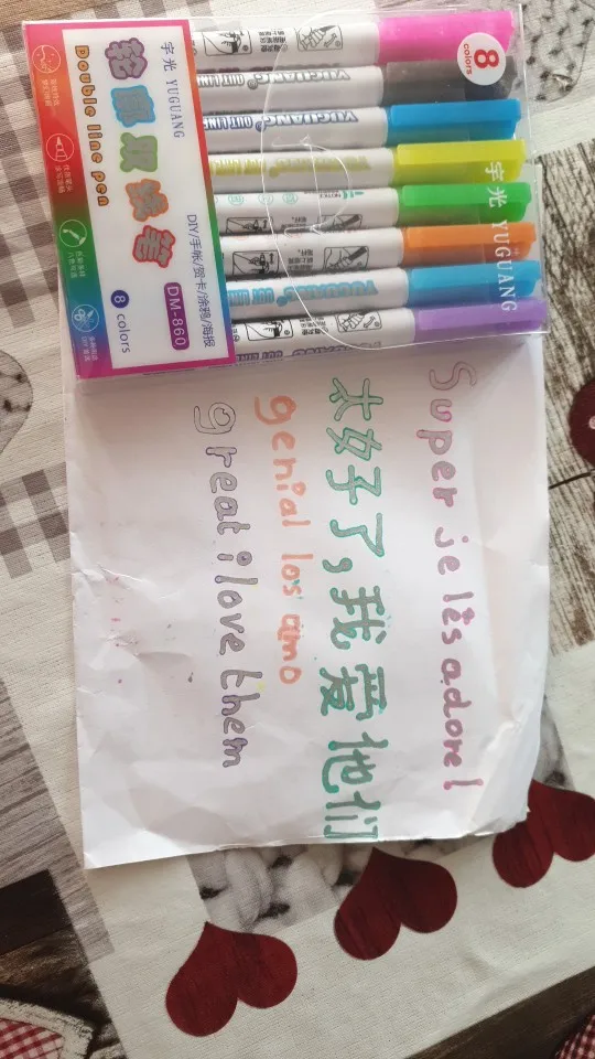Realmente hermosos, es lo que se muestra en la foto, son muy suaves para escribir y los dibujos quedas hermosos con estos marcadores, le compré uno a mi hija y también le resultaron cómodos para escribir y pintar. Los colores son todos lindos y la tinta no se mueve ni mancha. Realmente recomendados. Además el paquete llegó en menos de un mes, fue una muy buena experiencia.