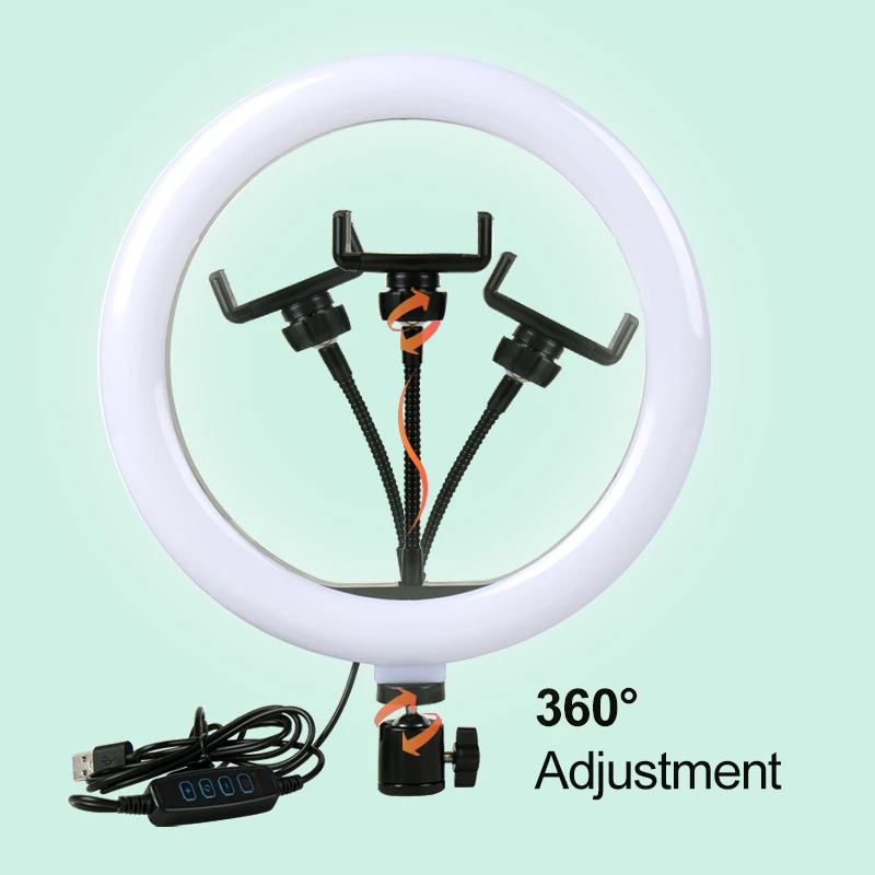 ПинсесКольсветильник Светодиодная лампа 10 дюймов с подставкой и регулируемой яркостью, светильник ный комплект для фотографии с держателем для телефона для Tik tok / studio / Youtube