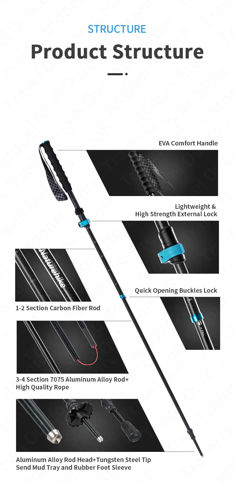 4-секционные складные трекинговые палки Naturehike из углеродного волокна, сверхлегкие, высокая прочность, алюминиевый сплав, портативная трость для хранения