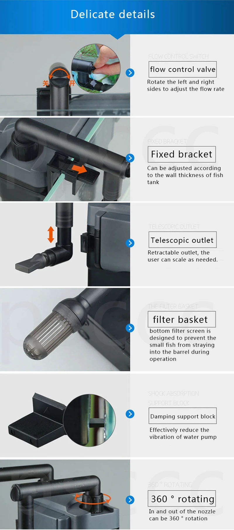 Доставка две недели. Пришло всё целое. Первое впечатление от фильтра очень хорошее. Работает очень тихо. К аквариуму подошёл идеально. Продавца и товар однозначно рекомендую! Продавцу спасибо!