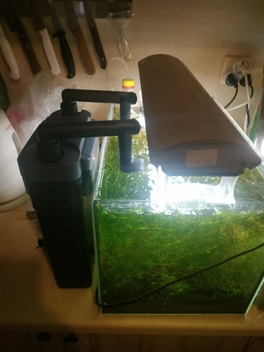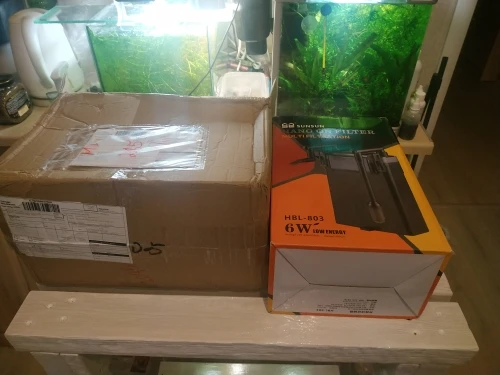 Оплатил 12.11, продавец отправил 20.11, в Краснодар пришло 28.11 (отправление трекалось в приложении почты россии). Продавец приложил переходник на евророзетку. Заводская коробка была дополнительно упакована в плотную картонную. Сделал фото 803 модели с аквариумами - один высотой 25см, просто поставил рядом; второй аквариум высотой 31,5см, повесил на стенку. Штатный субстрат уберу, заполнять корзины буду чисто на биологию лавовой крошкой фракцией 0,5-1,0 см.