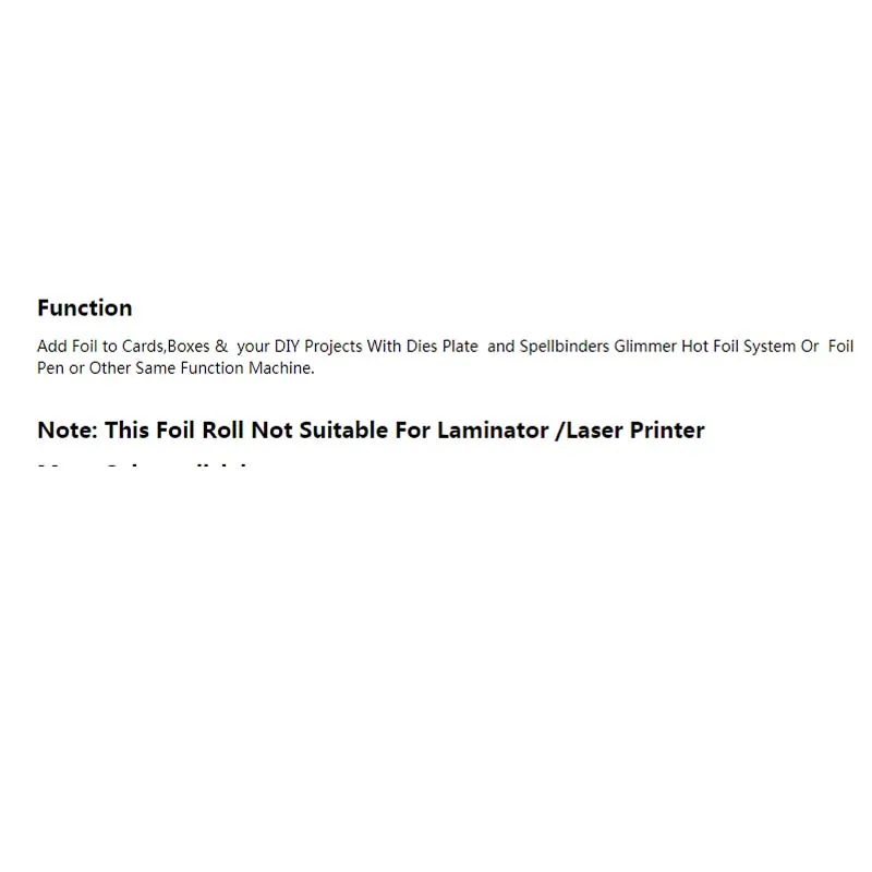Примечание: Эти фольги предназначены для работы с системами горячей фольги, такими как Мерцающая Горячая фольга и ручка горячей фольги, и не совместимы с системами ламинирования, такими как система Minc.
