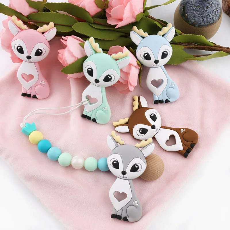 1 шт. силиконовый Прорезыватель для зубов с изображением оленя Sika, силиконовая Подвеска для прорезывания зубов, подарок на Рождество, силиконовые грызуны, Прорезыватель для зубов для малышей