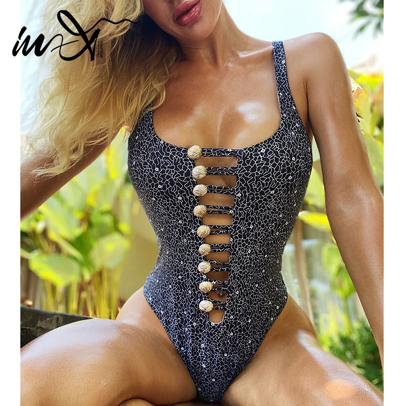 Слитный купальник с пуговицами In-X, женский сексуальный купальник с вырезами, Женский Монокини, купальный костюм с глубоким вырезом и цветочным принтом, боди