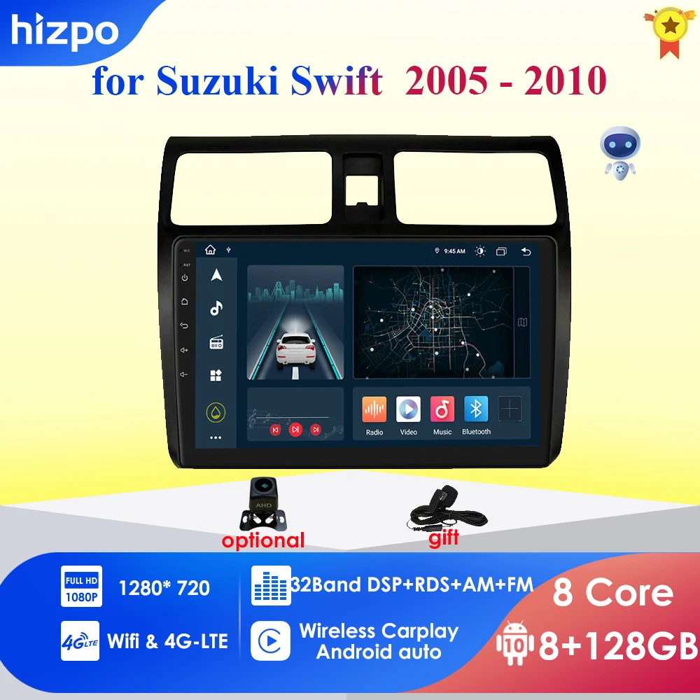 Автомагнитола PIP, 4 Гб + 64 ГБ2 + 641 + 16 дюймов, Android 10,0, мультимедийный плеер для Suzuki Swift 2005 2006 2007-2008, навигация GPS, 2 din, DVD