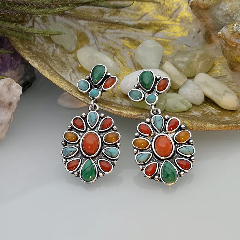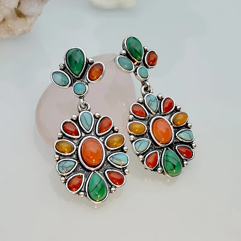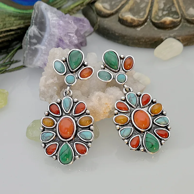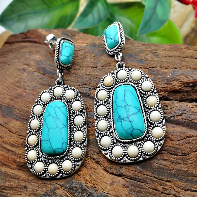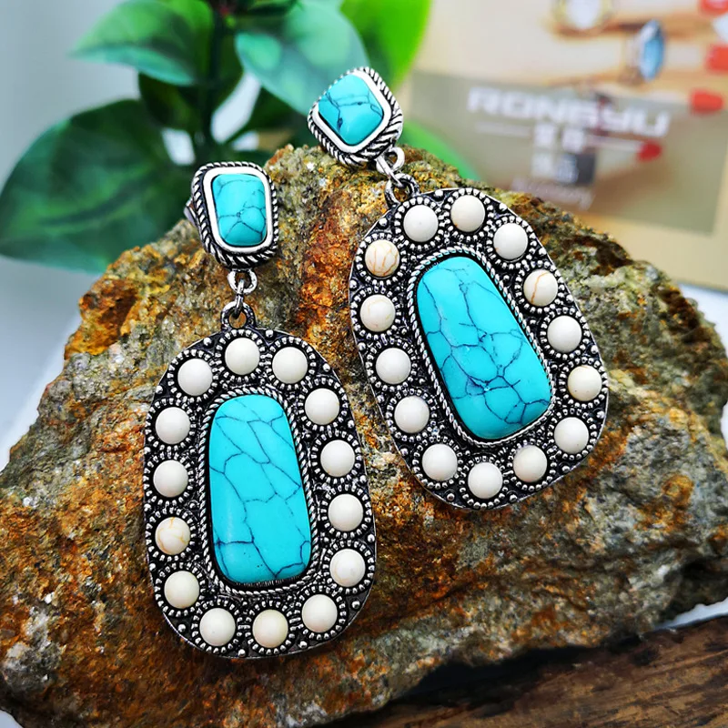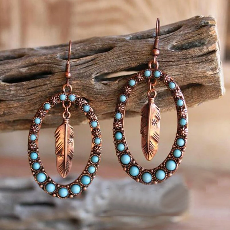 Женские серьги-гвоздики Banny, винтажные серьги-гвоздики в этническом стиле с бирюзой розового цвета
