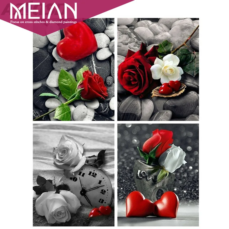 Алмазная вышивка Meian цветы Любовь Сердце картина Стразы алмазная живопись розы Алмазная мозаика полная выкладка