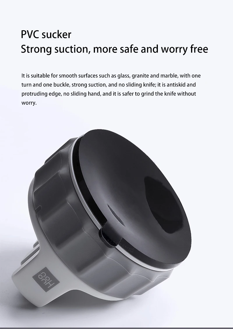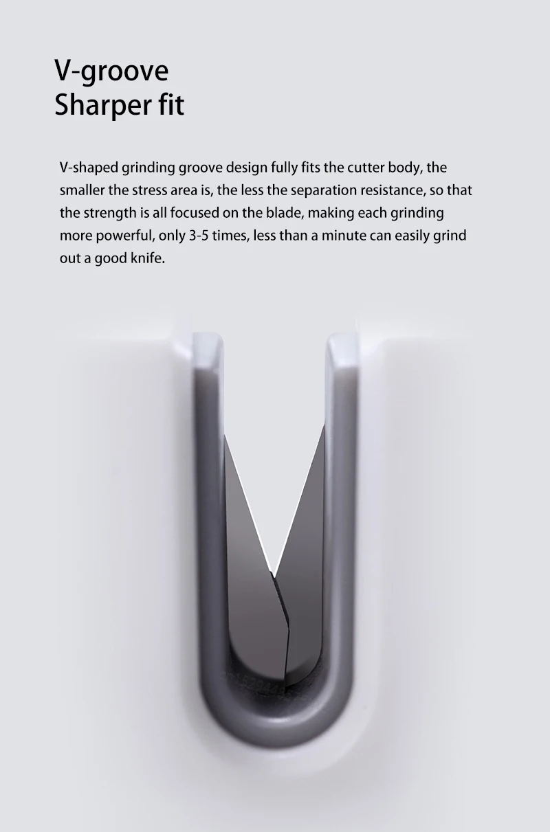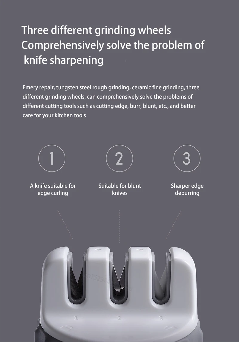 Особенности:-Основание на присоске из ПВХ для заточки одной рукой-V-образный точильный паз, подходит для корпуса ножа, делает его более резким-Три различных шлифовальных круга полностью решают любые проблемы заточки