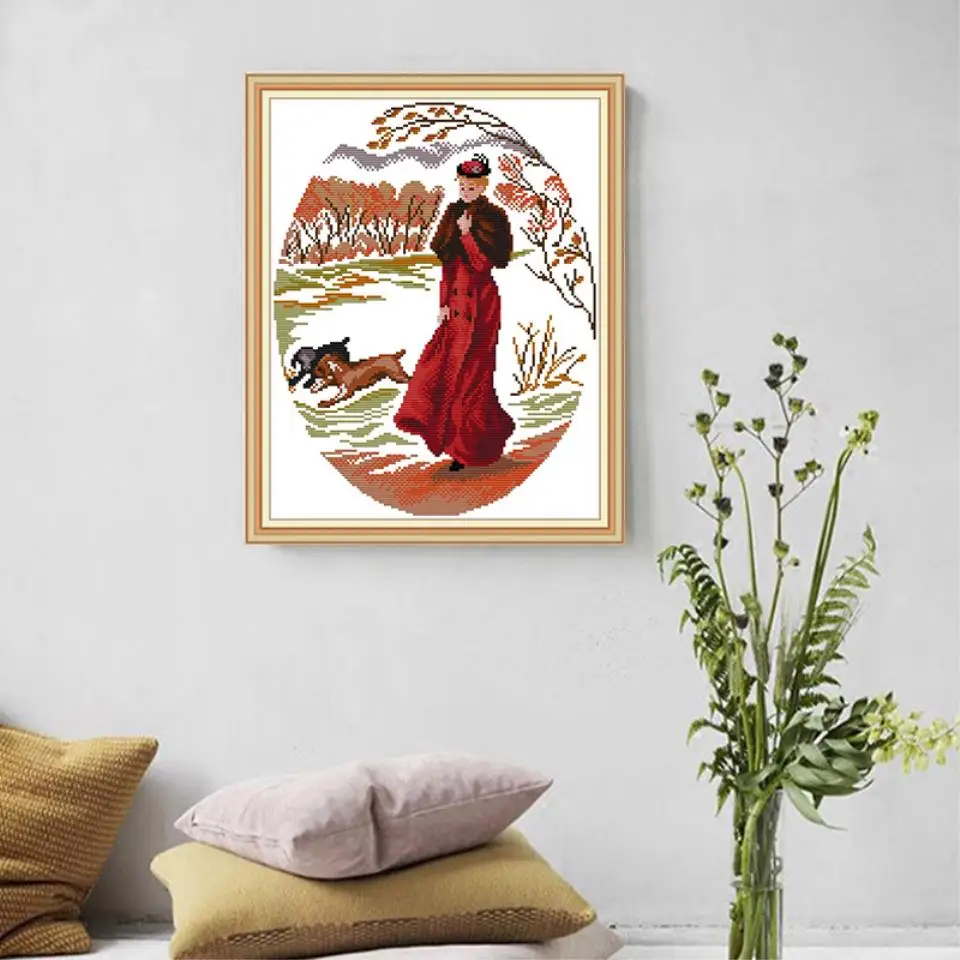 Joy Sunday lady in red painting Набор для вышивки крестиком «сделай сам» Набор для вышивки счетным или штампованным крестиком ручной работы Примечание: