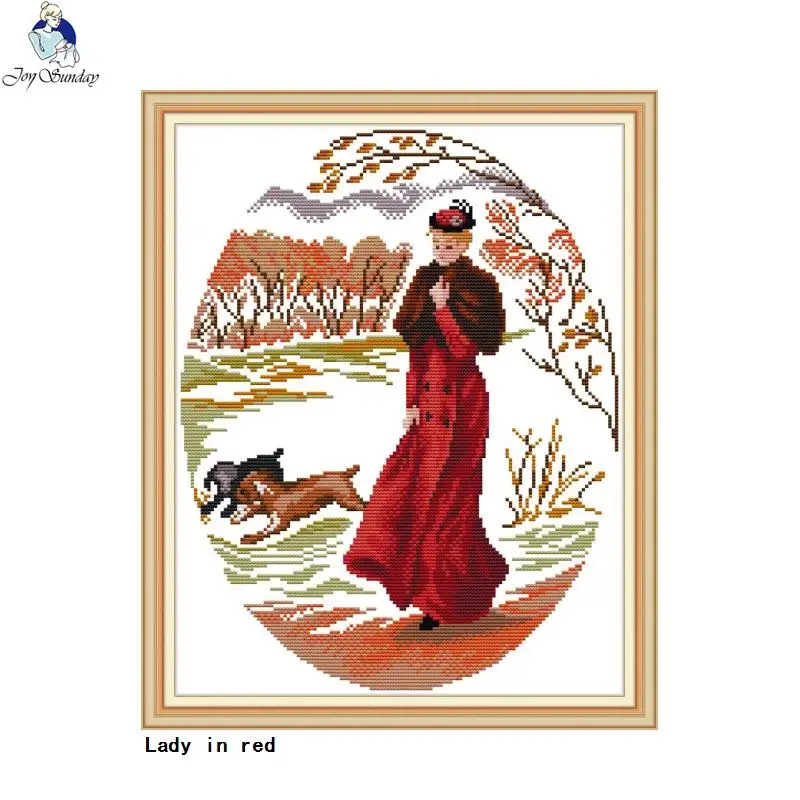 Картина Joy Sunday lady in red, Набор для вышивки крестиком с персонажами сделай сам, Набор для вышивки крестиком, подсчет или штамповка, рукоделие ручной работы