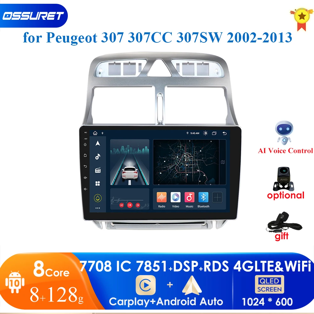 Автомагнитола 2 din, 4 Гб + 64 ГБ, Android 10, для PEUGEOT 307 sw 3...