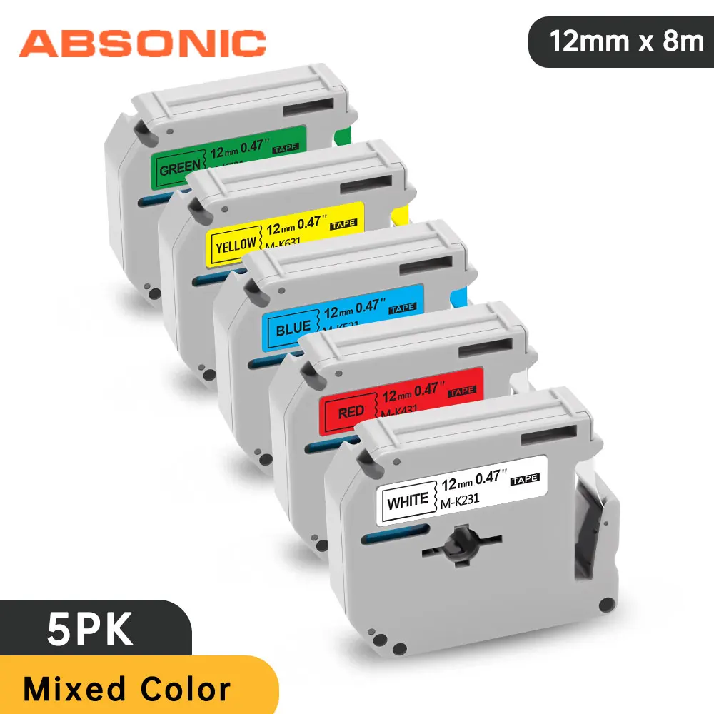 Absonic 5 цветов 12 мм MK-231 MK-431 MK-531 MK-631 MK-731 ленты для этикеток mk231 m231 совместимы с Brother P-touch PT-80