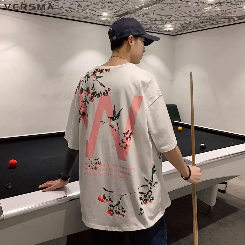 Винтажная Футболка VERSMA в стиле Харадзюку для мужчин и женщин, уличная одежда в японском стиле с принтом цветков вишни, Готическая футболка в стиле панк, Прямая поставка