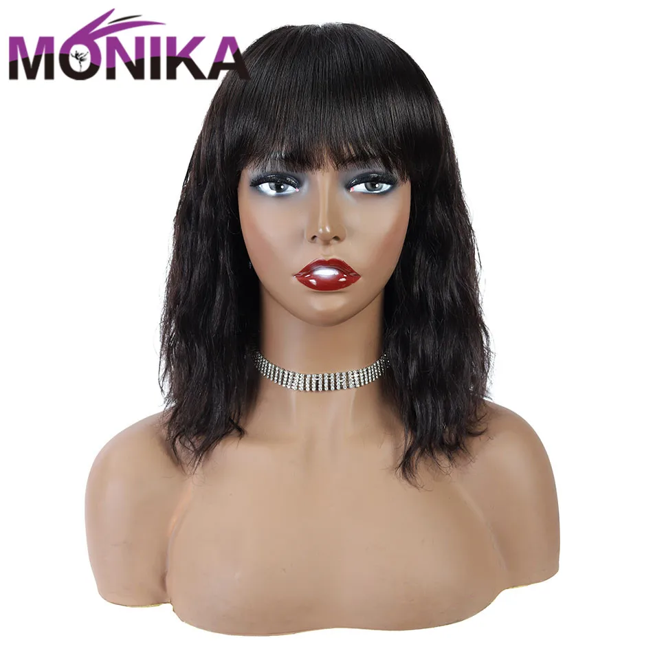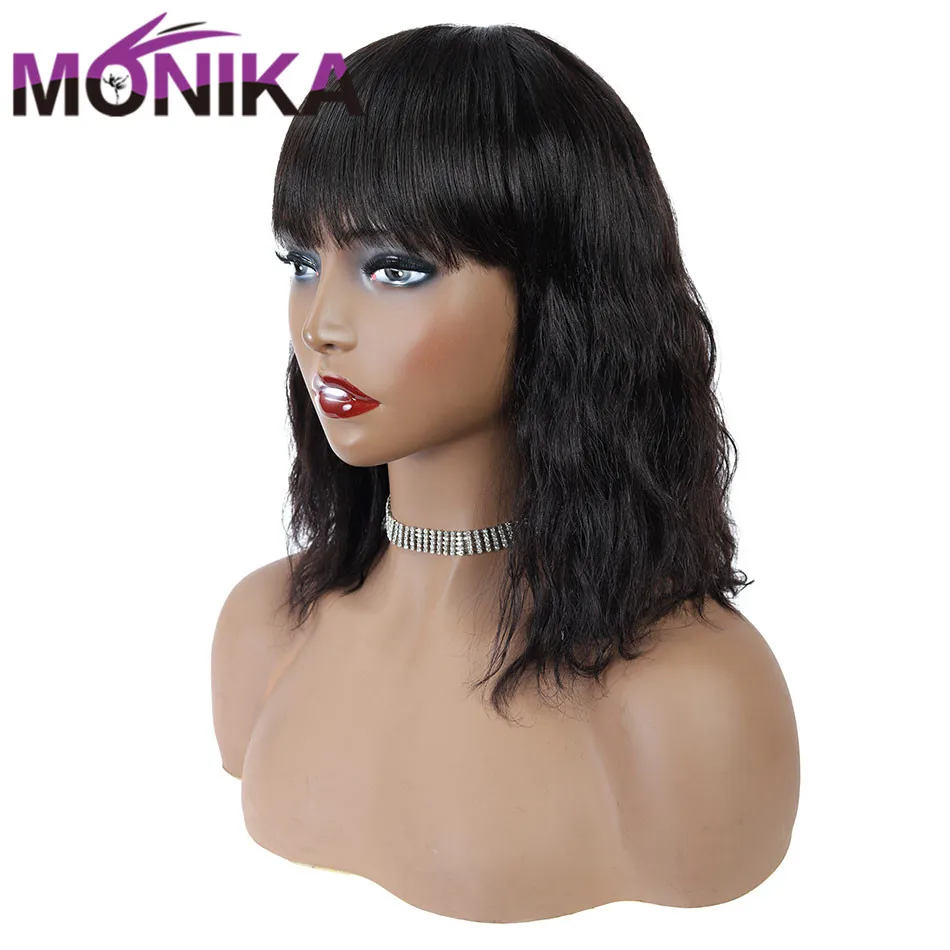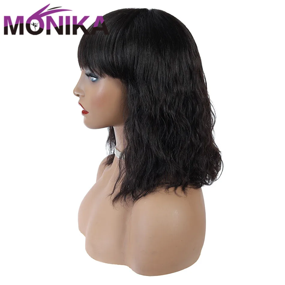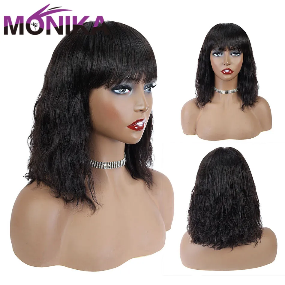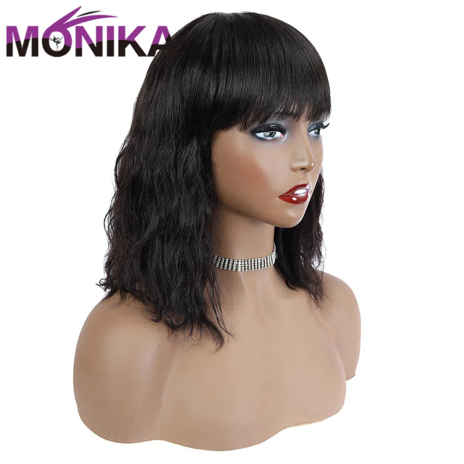 Monika Remy короткие парики из человеческих волос перуанские волнистые волосы натуральные волнистые парики с челкой человеческие волосы парики для женщин естественный цвет
