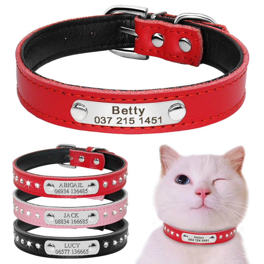 Персонализированный ошейник для собак с гравировкой, кожаный ошейник для щенков, ошейник для маленьких собак, чихуахуа, йоркширов, розовый