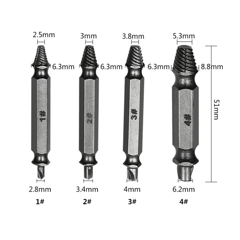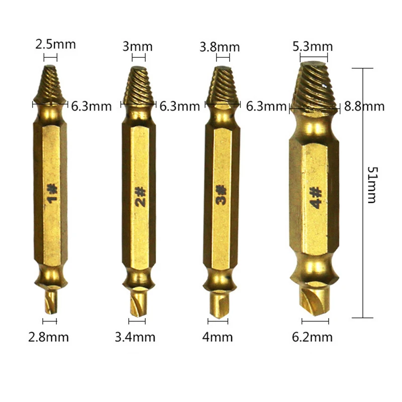 Набор направляющих сверл для извлечения поврежденных винтов, 4 шт.компл.