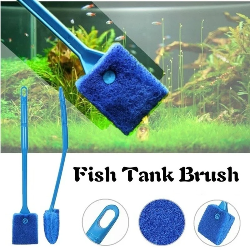 Кисти для аквариума 40 см с длинной ручкой, двусторонняя пластиковая щетка для очистки водорослей, аксессуары для аквариума, случайный цвет