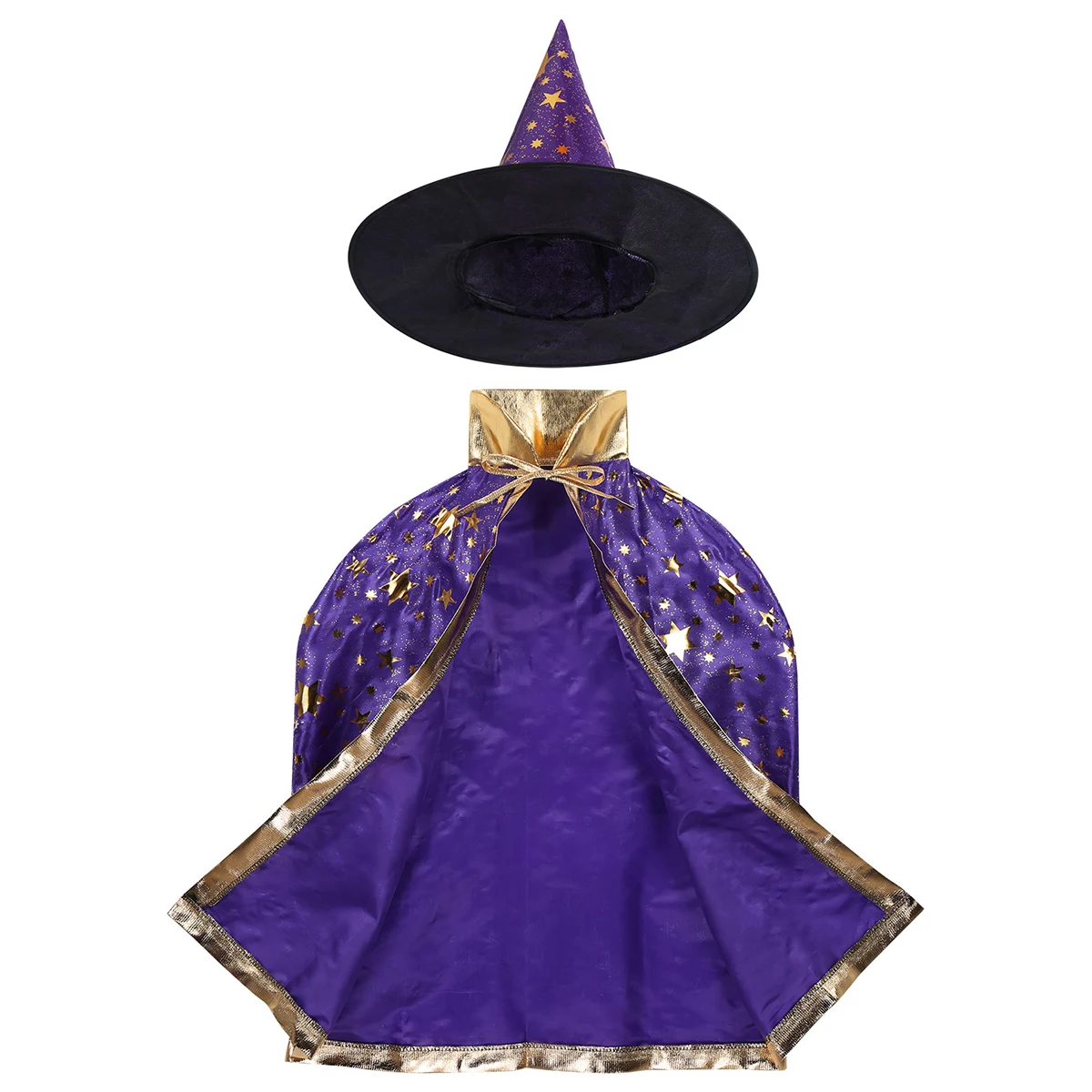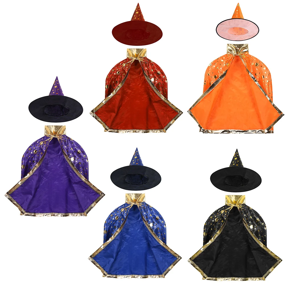 Детский костюм на Хэллоуин, накидка волшебника ведьмы с острым носком, Комплект аниме, косплей, вечевечерние, звезды, костюм волшебника для мальчиков и девочек