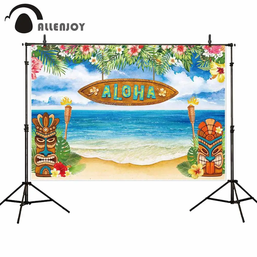 Allenjoy Летний пляж задний фон цветы тики маска море Моана Алоха тропические шторы Фотофон баннер для вечеринки в честь Дня Рождения украшения