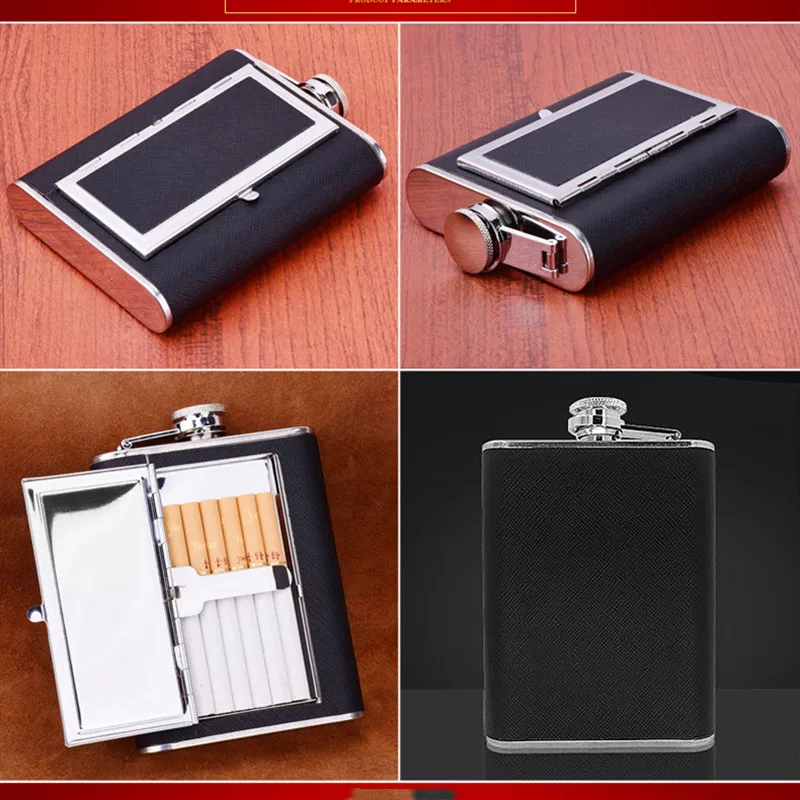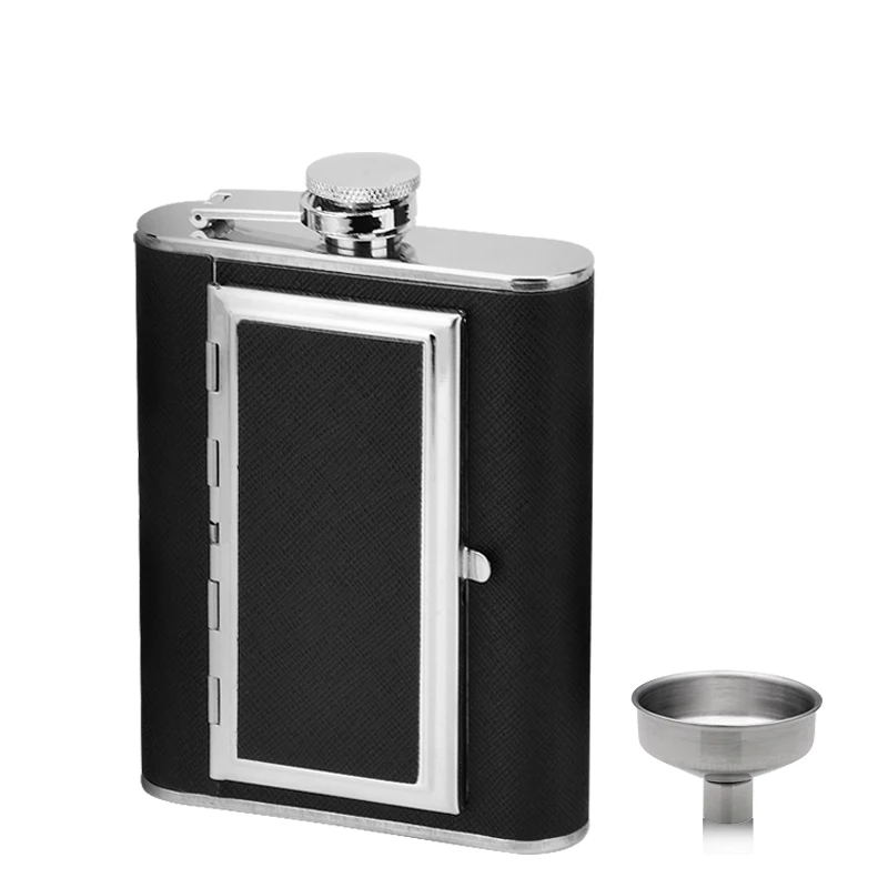 Креативный чехол для сигарет, нержавеющая сталь 304, набедренная фляга из искусственной кожи, алкоголь виски, бутылка с воронкой, наборы для подарка