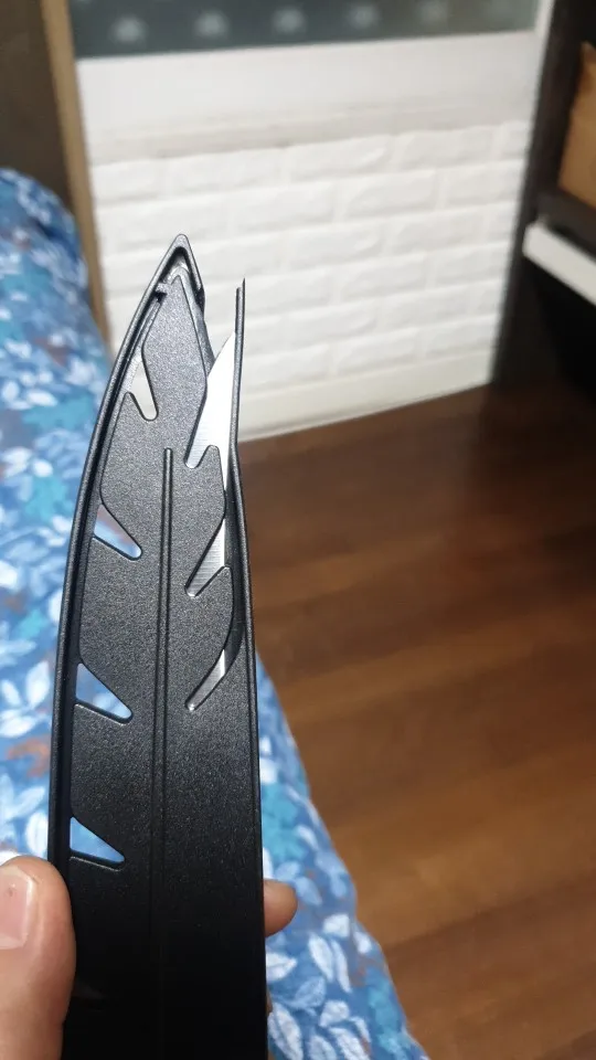 очень тонкое лезвие, гнётся во все стороны, нож острый