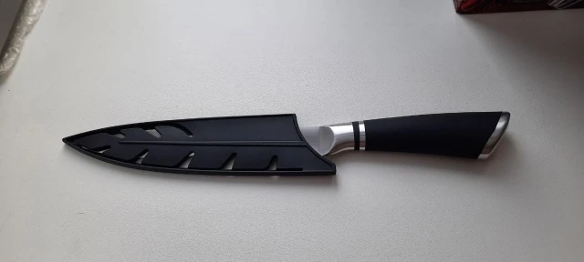 Нож выглядит хорошо, только защитный чехол немного велик, как для скрепления ножа. В противном случае все хорошо, доставка довольно быстрая.