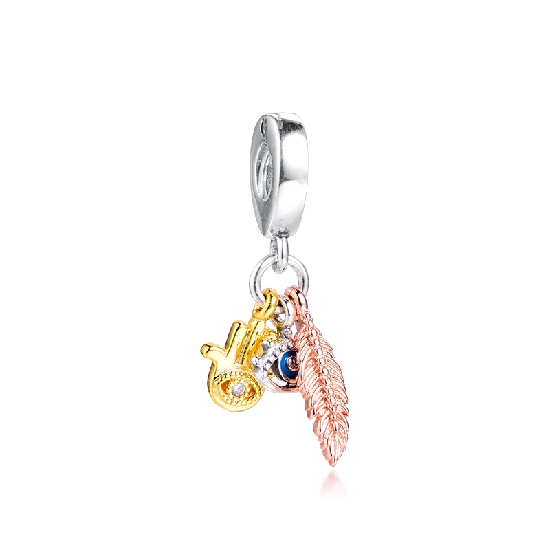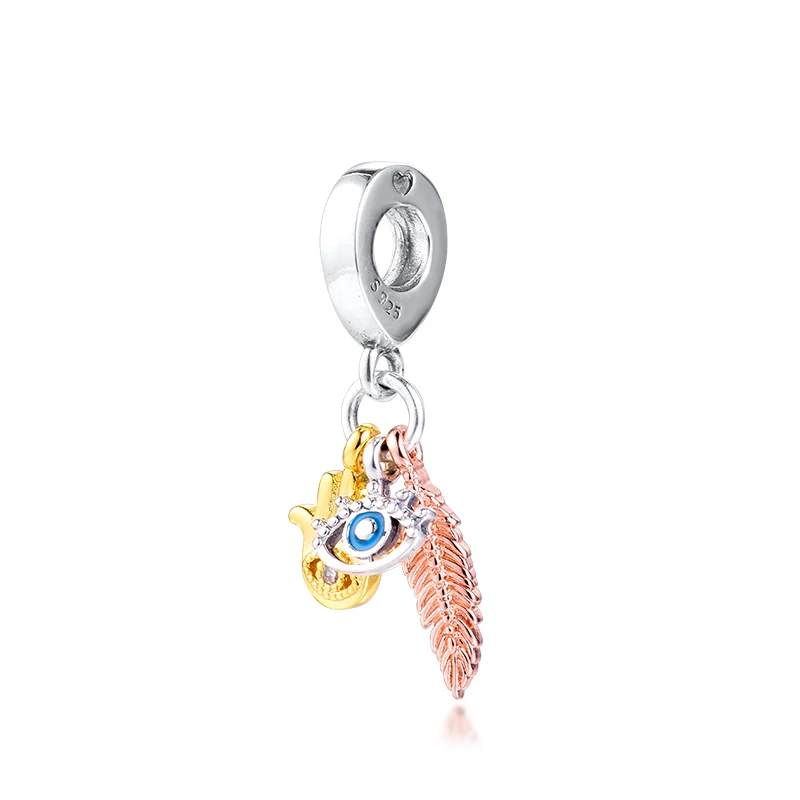 Браслет Пандора из серебра 925 пробы, с изображением глаз и перо