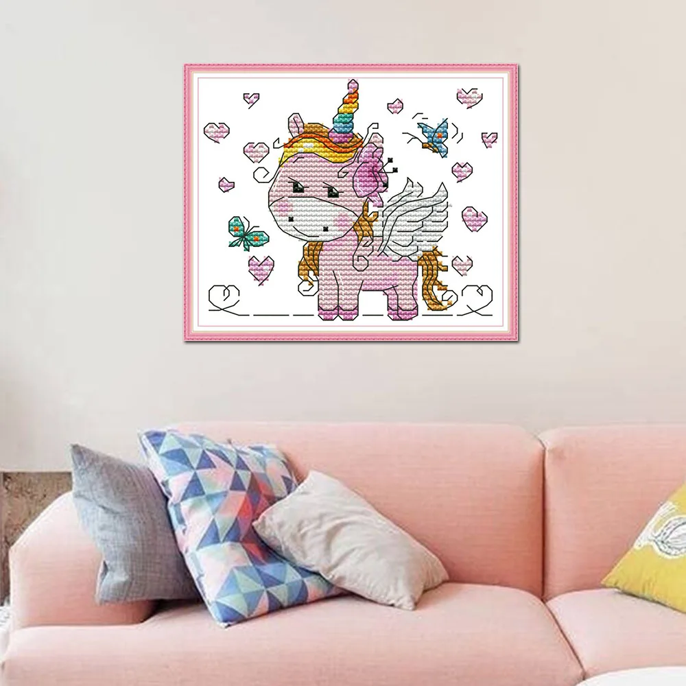 Вышивка с единорогом Joy Sunday KB060 14CT 11CT, домашний декор, наборы для вышивки крестиком с симпатичным единорогом
