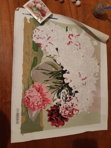 Посылка прибыла раньше, чем ожидалось. Я был приятно удивлен, что он поставляется с двумя пачками картин и кистей, чтобы выбрать, хочу ли изображение покрасить в более светлых или темных тонах. Единственным недостатком является то, что дерева рамы для фиксации холста были повреждены, и когда вы собрали его, он остается немного хрупким. Но эй, дерева не видны, потому что они покрывают холст и могут быть зафиксированы немного клея. Так что это не проблема. В целом очень доволен.