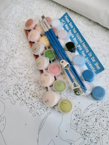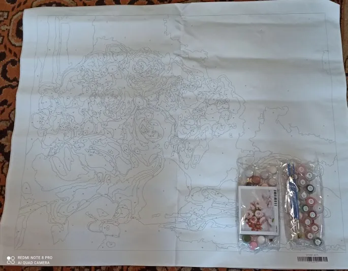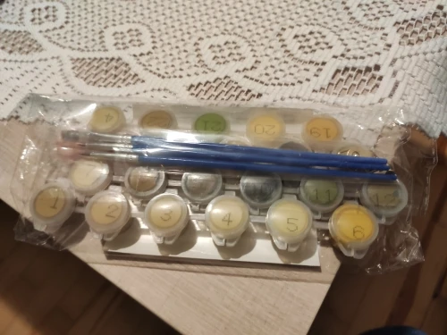 Товар соответствует описанию. Всё в комплекте - холст, краски, кисти. детализация рисунка не средняя