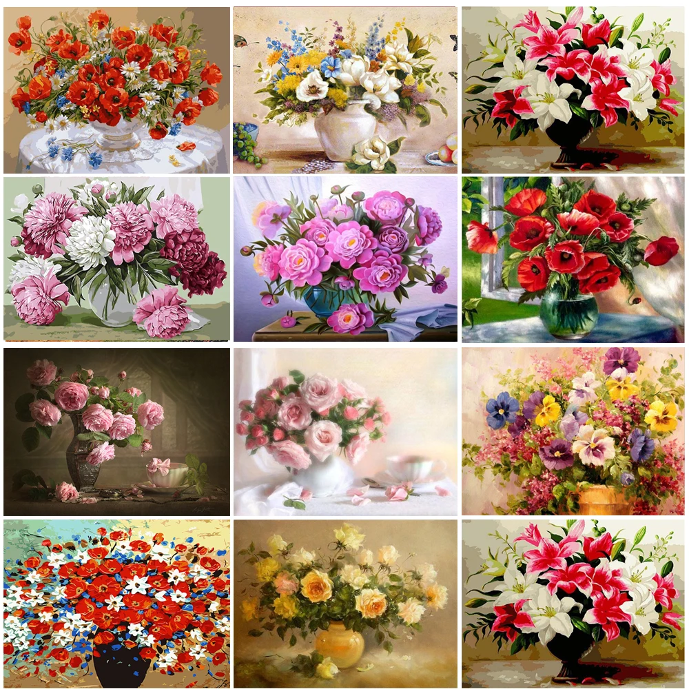 Раскраска по номерам на холсте, Раскраска по номерам, с цветами, картина маслом, ручная роспись, домашний декор, подарок
