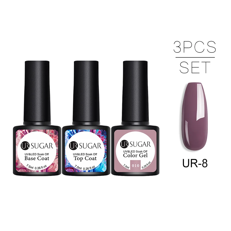 3 бутылки 7,5 мл UR SUGAR; Однотонная; Украшенная пайетками; Цветной Гель-лак для ногтей